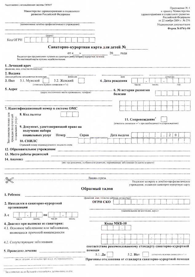 Санаторно-курортная карта для детей форма 076/у требуется для направления ребенка на санаторно-курортное лечение и свидетельствует об отсутствии противопоСаратовей для пребывания в определенных природно-климатических условиях.