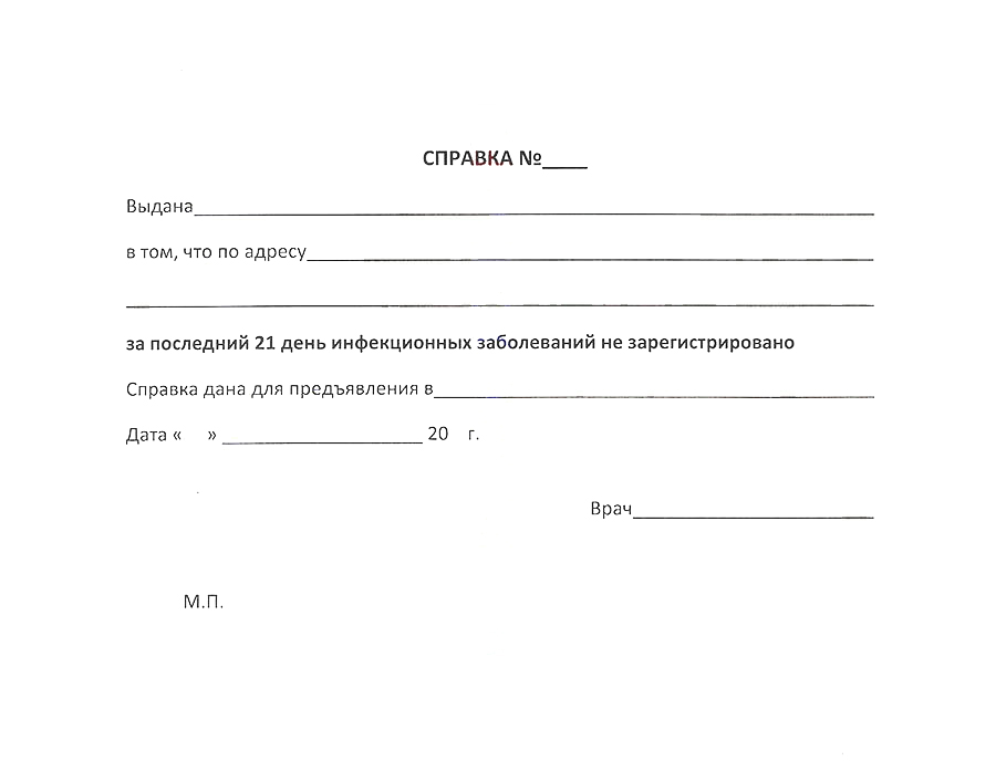 Справка о контактах или о благоприятном эпидокружении свидетельствует об отсутствии контактов с инфекционными больными у взрослого или ребенка за последние три недели (21 день).